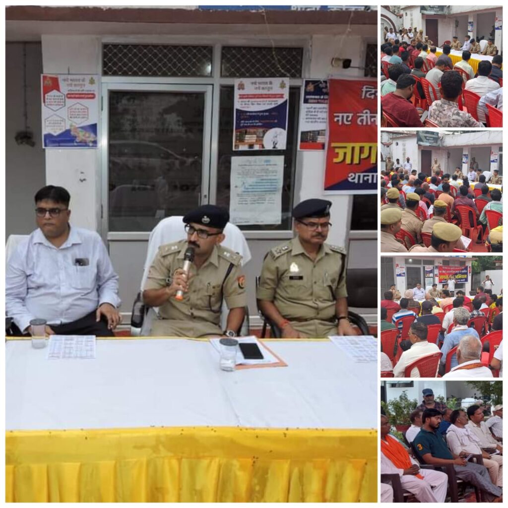 बस्ती। डीएम रवीश गुप्ता व एसपी गोपाल कृष्ण चौधरी बस्ती द्वारा एएसपी ओमप्रकाश सिंह बस्ती क्षेत्राधिकारी सदर के साथ थाना कोतवाली परिसर में गोष्ठी कर थाना क्षेत्र के सम्मानित नागरिकों को लागू तीन नये कानून( भारतीय न्याय संहिता,