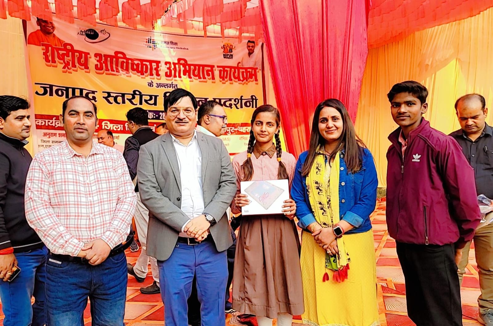 क्विज व मॉडल प्रदर्शनी में संयुक्त रूप से चयनित छात्रों को पुरस्कारस्वरूप टैबलेट, विज्ञान किट, बुक सेट, स्कूल बैग के साथ मोमेंटो व सर्टिफिकेट देकर पुरस्कृत किया गया। कार्यक्रम का संचालन शिक्षक व कवि संतोष सिंह ने किया। इस अवसर पर बीईओ अनुराग मिश्रा, अरुण वर्मा, अजीत सिंह जिला समन्वयक प्रशिक्षण अनुराग शर्मा, एसआरजी सुधीर मेहरोत्रा, एआरपी राजेश मिश्रा, अरविंद शुक्ला, नंद कुमार शुक्ला, प्रद्युम्न पांडेय, अशोक कुमार, सुनील कुमार, लोकेश श्रीवास्तव, नवल पाठक, प्रीति समय मिश्रा आदि उपस्थित रहे।