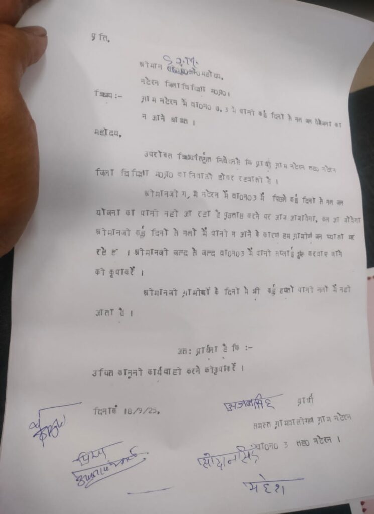 ग्रामीणों ने बताया कि कई मोहल्लों के नलों में महीनों से पानी नहीं पहुंच रहा है। कुछ क्षेत्रों में एक दिन छोड़कर नल चलाए जाते हैं। लेकिन यदि किसी दिन टंकी भरने में समस्या आ जाए तो चार-चार दिन तक नल नहीं चलते। वर्तमान में आधे नटेरन में पेयजल आपूर्ति पूरी तरह बाधित है।