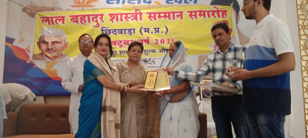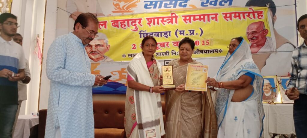 छिंदवाड़ा। भारत के पूर्व प्रधानमंत्री लाल बहादुर शास्त्री जी की जयंती के पावन अवसर पर छिंदवाड़ा में आयोजित एक भव्य कार्यक्रम में स्वाभिमान जनकल्याण समिति/स्वाभिमान शक्ति सेना (मध्य प्रदेश) के पदाधिकारियों को सम्मानित किया गया। यह सम्मान मणिपुर एवं छत्तीसगढ़ की पूर्व राज्यपाल अनुसूया ऊईके एवं छिंदवाड़ा के सांसद विवेक बंटी साहू की ओर से प्रदान किया गया। कार्यक्रम में संगठन के प्रमुख सदस्यों को स्मृति चिन्ह एवं प्रशस्ति पत्र देकर सम्मानित किया गया, जो उनके सामाजिक योगदान को मान्यता प्रदान करता है। इस आयोजन ने शास्त्री जी की सादगी, ईमानदारी और राष्ट्रभक्ति की भावना को याद करते हुए जनकल्याण के क्षेत्र में कार्यरत व्यक्तियों को प्रेरित किया।