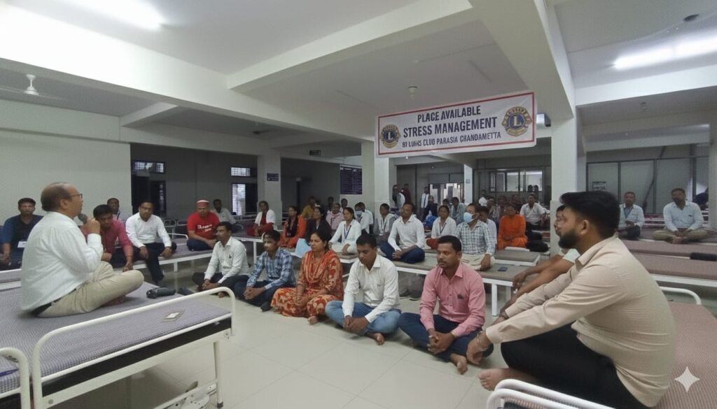 - लायंस आई हॉस्पिटल एंड रिसर्च सेंटर, परासिया में स्टाफ एवं नागरिकों के लिए “स्ट्रेस-फ्री वर्क कल्चर” पर विशेष सत्र आयोजित किया गया, जो कार्यस्थल पर तनाव न्यूनीकरण के व्यावहारिक टिप्स प्रदान करने वाला था।