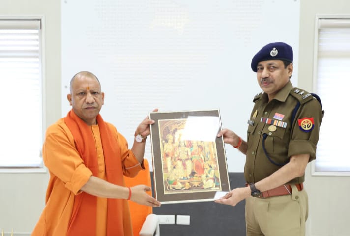 लखनऊ। उन्नाव के पुलिस अधीक्षक श्री जयप्रकाश सिंह ने आज लखनऊ स्थित मुख्यमंत्री कार्यालय में उत्तर प्रदेश के मुख्यमंत्री योगी आदित्यनाथ से शिष्टाचार मुलाकात की। इस दौरान एसपी ने मुख्यमंत्री जी को एक सुंदर धार्मिक चित्र भेंट किया।