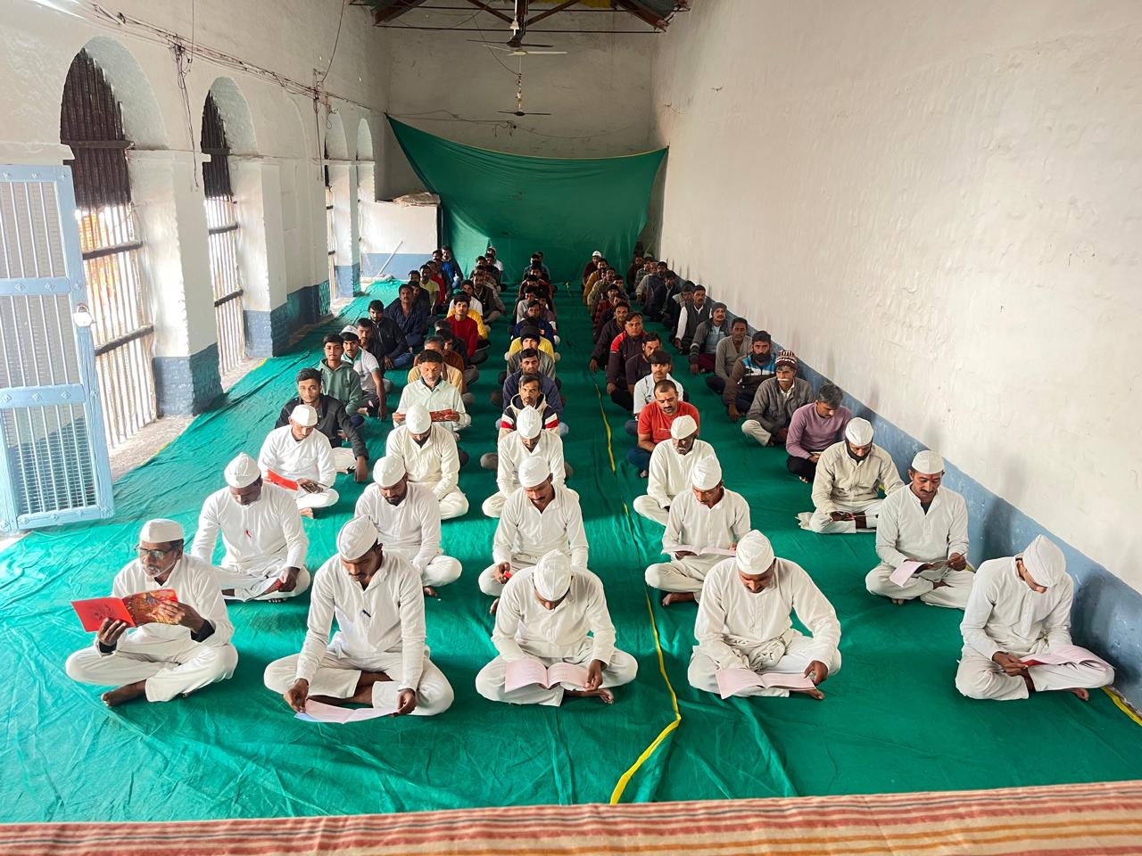 राजगढ़ अंतरराष्ट्रीय गीता महोत्सव श्रीमद्भगवद्गीता कार्यक्रम में गीता जयंती के अवसर पर जिला जेल राजगढ़ में निरुद्ध समस्त बंदी एवं स्टाफ द्वारा गीता जी के 15 वें अध्याय का वाचन किया गया एवं बंदियों को गीता के महत्व के बारे में बताया गया।इस दौरान प्रमुख मुख्य प्रहरी अमरसिंह सोलंकी सहित जिला जेल स्टाफ उपस्थित रहा।