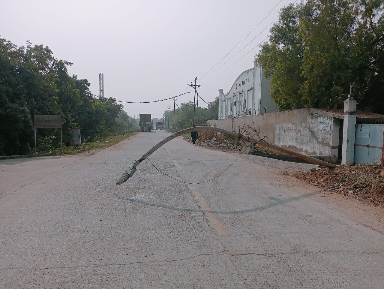 हादसे को आमंत्रण दे रहा बीच रोड पर टूटा पड़ा स्ट्रीट लाइट का पोल, आवागमन में आ रही बाधा