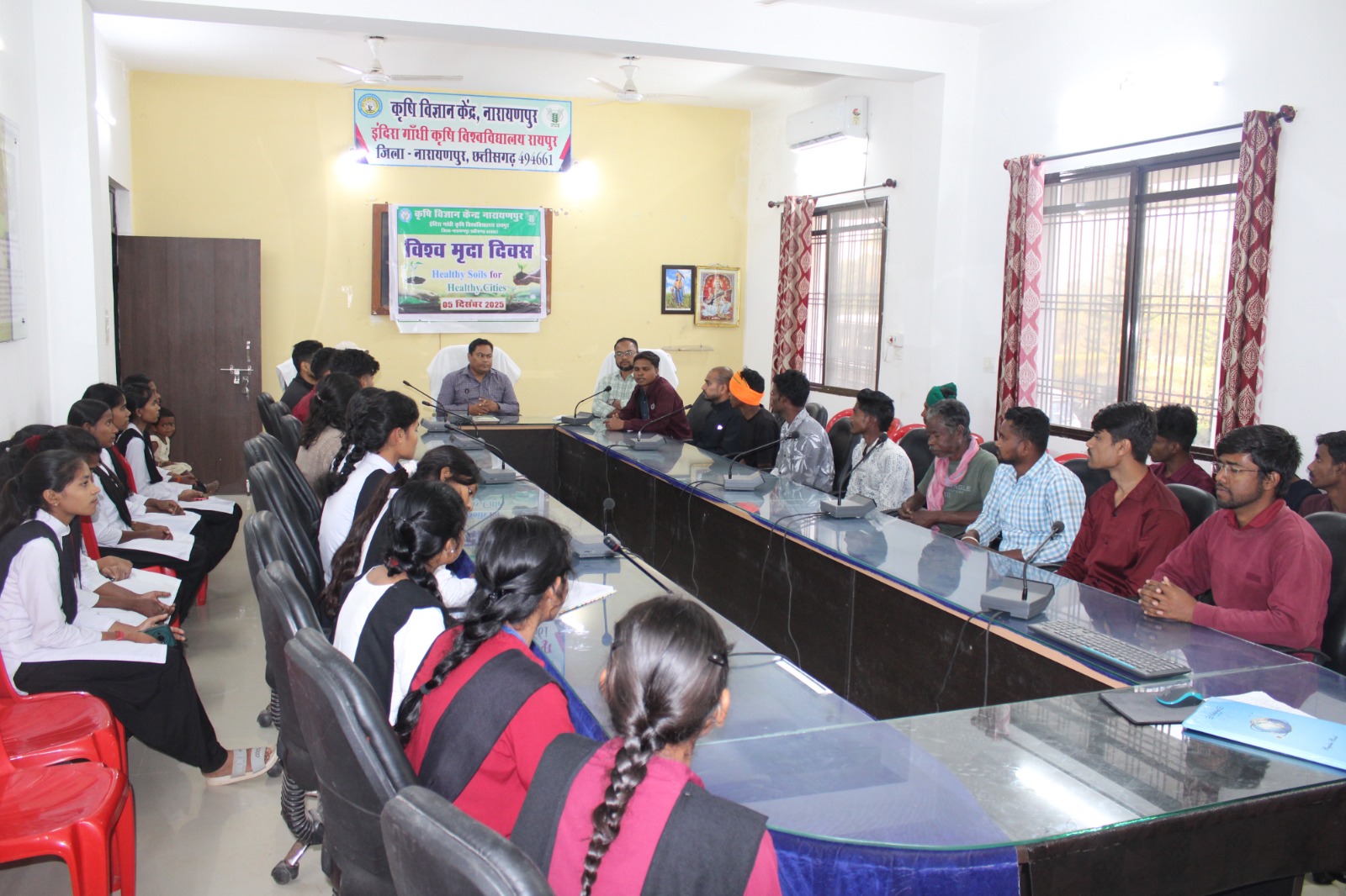 नारायणपुर, 06 दिसम्बर 2025 // कृषि विज्ञान केंद्र नारायणपुर में 05 दिसम्बर को विश्व मृदा दिवस उत्साह और जागरूकता के साथ मनाया गया। “Healthy Soil for Healthy Cities” थीम पर आधारित इस कार्यक्रम का उद्देश्य किसानों में मृदा स्वास्थ्य संरक्षण की समझ विकसित करना और भूमि की उर्वरता बनाए रखने के वैज्ञानिक उपायों को प्रोत्साहित करना था। विशेषज्ञों ने बताया कि नियमित मृदा परीक्षण से किसान कम लागत में अधिक उत्पादन प्राप्त कर सकते हैं और मिट्टी की उर्वरता लंबे समय तक सुरक्षित रहती है।
