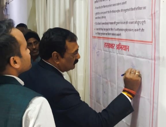 शहडोल – भारत सरकार के निर्देशानुसार जिले में बाल विवाह रोकने हेतु महिला एवं बाल विकास विभाग द्वारा अन्य विभागों एवं समाज के सहभागिता से जागरूकता अभियान चलाया जा रहा है। इसी कड़ी में बाल विवाह रोकने हेतु हस्ताक्षर अभियान की शुरूआत कलेक्टर डॉ.केदार सिंह, मुख्य कार्यपालन अधिकारी जिला पंचायत श्री शिवम प्रजापति द्वारा की गई। कार्यक्रम में मुख्य चिकित्सा एवं स्वास्थ्य अधिकारी डॉ. राजेश मिश्रा, डीपीसी श्री अमरनाथ सिंह सहित अन्य अधिकारियों ने बाल विवाह मुक्त भारत अभियान के अंतर्गत कलेक्ट्रेट परिसर में शपथ पत्र में हस्ताक्षर कर बाल विवाह के प्रति जनमानस को जागरूक किया।