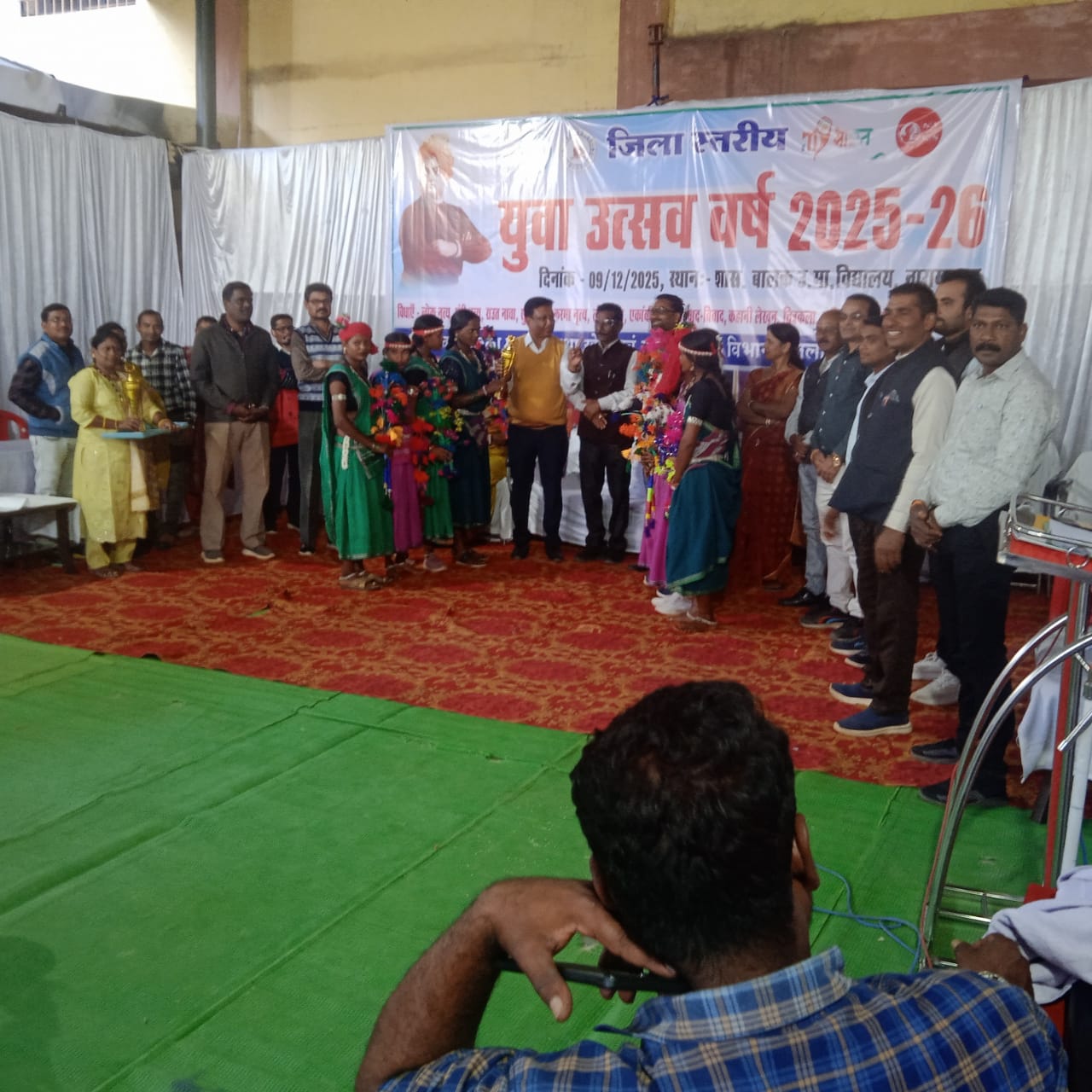 जिला नारायणपुर में जिला स्तरीय युवा उत्सव का आयोजन दिनांक 09 दिसंबर, 2025 को शास. बालक उच्चतर माध्यमिक विद्यालय, नारायणपुर में आयोजित किया गया, जिसमें विभिन्न विधाओं के सांस्कृतिक, कलात्मक तथा बौद्धिक प्रतियोगिताएं आयु वर्ग 15 से 29 वर्ष तक (प्रतिभागियों का) 18 से 40 वर्ष तक (संगतकार) सम्मिलित हुए। कार्यक्रम में अतिथि के रूप में माननीय अध्यक्ष, नगरपालिका परिषद्, नारायणपुर, श्री कमलापति मिश्रा, पार्षद, नगरपालिका परिषद्, उपस्थिति रहें। इसके साथ ही श्री सुदीप झा, अध्यक्ष, शाला प्रबंधन समिति बालक उ.मा.वि. नारायणपुर, जिले के अधिकारी/कर्मचारी, शिक्षक, गणमान्य नागरिक, स्कूल/कॉलेजों के छात्र-छात्राओं में उक्त आयोजन में सहभागिता प्रदान किया।