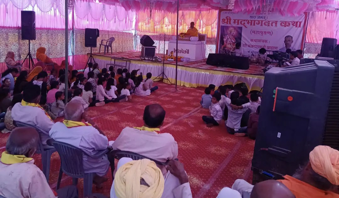 कलश यात्रा जब चोहटा शिव मंदिर स्थित कथा स्थल पर पहुंची तो कंवराराम महाराज ने वेद मंत्रों के साथ कलश स्थापित कराए। पूजन विधि संपन्न होने के बाद श्रीमद् भागवत कथा का विधिवत शुभारंभ हुआ।इस सप्ताहिक ज्ञान यज्ञ के शुभारंभ पर पूरा पंडाल श्री कृष्ण एवं श्री राम के जयकारों से गूंज उठा जिससे वातावरण भक्तिमय हो गया।