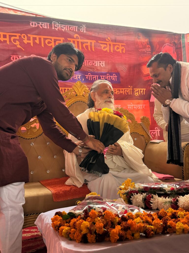 संस्कृति ही क्षेत्र, स्कूल, कॉलेज के साथ देश की पहचान बनाती है। हमारे पूर्वजों ने हमें शिक्षा के मन्दिर जो शिक्षा ग्रहण करने के लिए दिए हैं, हमें यहां से संस्कार लेकर जाना चाहिए। गीता मनीषी जी ने अरविंद संगल चेयरमैन नगर पालिका परिषद् शामली की ओर संकेत करते हुए कहा कि करनाल से झिंझाना और झिंझाना से शामली आता है चेयरमैन शामली के मन में भी जियो गीता के नाम से एक चौंक का नामकरण करने का जो प्रस्ताव दिया हुआ है व्यस्त कार्यक्रम में से समय निकाल कर शामली में भी जल्द ही जियो गीता चौंक का शिलान्यास किया जायेगा। गीता चौंक पहुंचने से पहले यमुना पुल बिडोली पर आईटी सैल के जिला प्रमुख करनाल विकास राणा, वरिष्ठ पत्रकार मुर्शरफ राणा आदि ने अपने साथियों के साथ राष्ट्रीय संत महामण्डलेश्वर गीता मनीषी स्वामी श्री ज्ञानानन्द जी पर पुष्प वर्षा कर उनका भव्य स्वागत किया। और गीता चौंक झिंझाना पर पहुंचते ही महाराज जी का जयकारों के नारों से स्वागत किया गया।