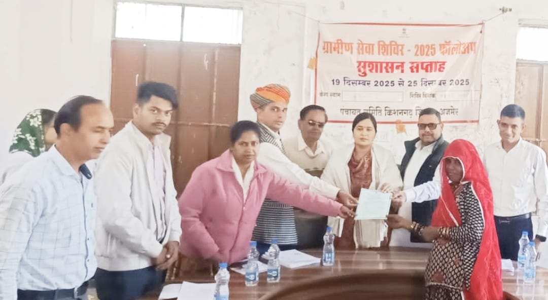 अजमेर के रूपनगढ़ सरकार के 2 वर्ष पूर्ण होने के उपलक्ष्य में मनाए जा रहे सुशासन सप्ताह के तहत ग्राम पंचायत में आयोजित हुआ ग्रामीण सेवा शिविर का फॉलोअप शिविर आयोजित हुआ।पिछले 15 से 20 वर्षों से आवासीय पट्टे के लिए भटक रही घुमक्कड़ समुदाय की कंचन देवी पत्नी हेमराज लोहार को आखिरकार आवासीय पट्टा जारी किया।कंचन देवी अपने पट्टे को लेकर ग्राम पंचायत, तहसील कार्यालय, उपखंड कार्यालय एवं जिला कलेक्टर कार्यालय के निरंतर चक्कर काट रही थी।