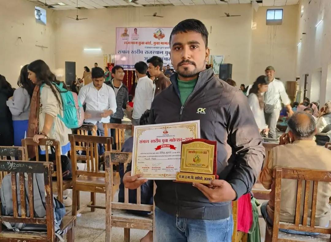 नागौर जिले के थाँवला कस्बे के प्रतिभाशाली युवा कलाकार प्रियेन्द्र कुमावत ने अपनी उत्कृष्ट कला प्रतिभा के दम पर एक और बड़ी उपलब्धि हासिल की है। संभाग स्तरीय चित्रकला प्रतियोगिता में प्रथम स्थान प्राप्त कर उन्होंने राज्य स्तरीय प्रतियोगिता के लिए अपना चयन सुनिश्चित किया है। उनकी इस सफलता से न केवल परिवार बल्कि पूरे थाँवला क्षेत्र में खुशी और गर्व का माहौल है।यह प्रतिष्ठित संभाग स्तरीय चित्रकला प्रतियोगिता संभागीय आयुक्त के निर्देशन में आयोजित की गई, जिसमें अजमेर संभाग के विभिन्न जिलों से आए चयनित एवं श्रेष्ठ कलाकारों ने भाग लिया। प्रतियोगिता के लोक कलाकार वर्ग में प्रियेन्द्र कुमावत द्वारा प्रस्तुत की गई कलाकृति को निर्णायक मंडल ने सर्वश्रेष्ठ मानते हुए प्रथम स्थान प्रदान किया। उनकी रचना में पारंपरिक लोक संस्कृति, भावनात्मक गहराई और तकनीकी दक्षता का अद्भुत समन्वय देखने को मिला, जिसने निर्णायकों को विशेष रूप से प्रभावित किया।