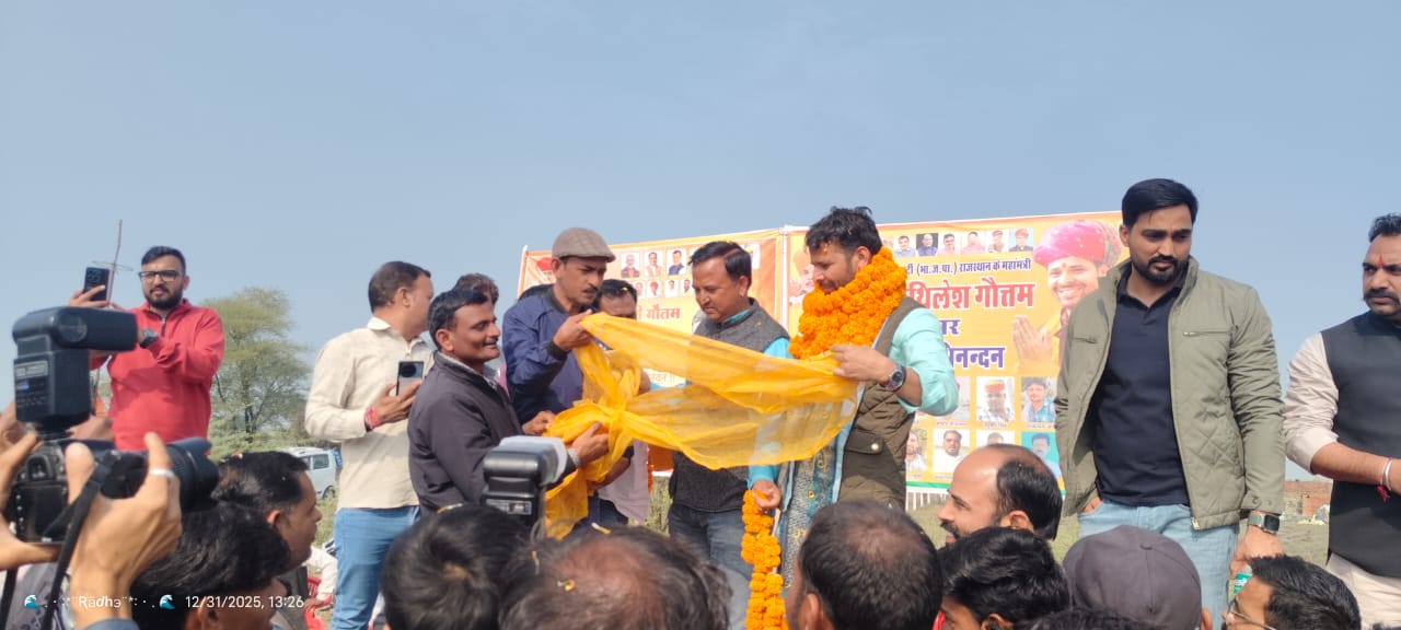 अजमेर, राजस्थान।भाजपा प्रदेश मंत्री डाॅ. मिथिलेश गौतम का पहली बार अपने पैतृक गांव आने पर बुधवार को ग्राम हिंगोनियां की ओर से भाजपा ओबीसी युवा मोर्चा प्रदेश कार्य समिति सदस्य अजीत सिंह राव, शिवराज जाट, जम्मू मंसूरी एवं बीआरपी संघ राजस्थान प्रदेश सचिव रणजीत सिंह केशावत ने डाॅ. मिथिलेश गौतम का साफा बंधन एवं माल्यार्पण कर स्वागत किया। इस मौके पर प्रशंसको की भीड़ जमा हो गई थी। डॉ. मिथिलेश गौतम ने सभी का आभार व्यक्त किया।
