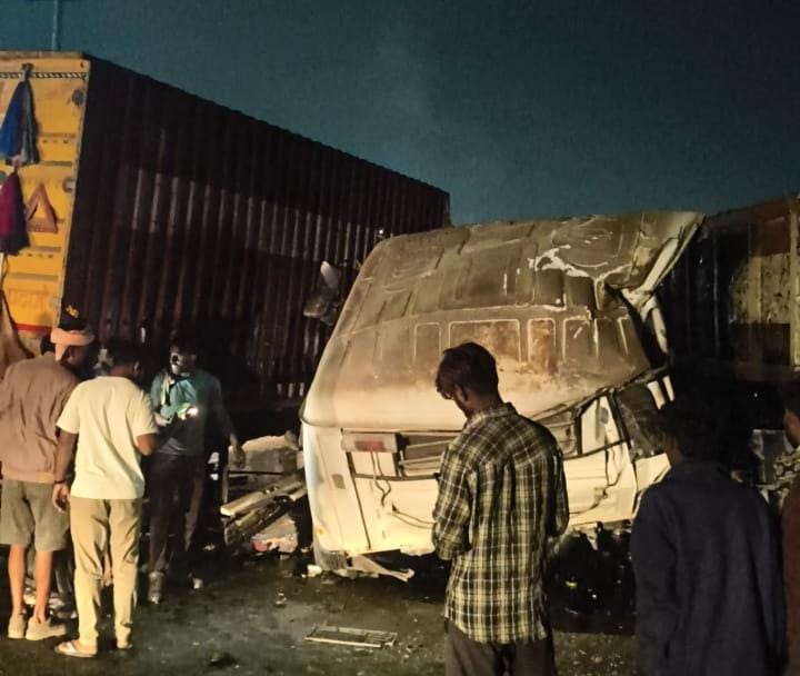 जहाजपुर,भीलवाड़ा ,राजस्थान। आज दिनांक 2 जनवरी 2026 को शाम 7 बजे करीब जहाजपुर शाहपुरा रोड पर पेट्रोल पंप के सामने दो ट्रकों की आमने सामने भिड़ंत से जोरदार एक्सीडेंट हुआ जिसमें एक की मौके पर ही मौत ,एक घायल कलासी बाल बाल बचा घायल व कलासी है up के मथुरा जिले के छटीकरा निवासी टेलर के चालक की हुई मृत्यु ,मृतक की नहीं हुई पहचान वर्ष 2026 का पहला एक्सीडेंट जिसमें एक की गई जान इस दौरान नगर पालिका दमकल,पुलिस प्रशासन,ओर कई समाजसेवक इस घटना स्थल पर पहुंचे और घायलों अस्पताल पहुंचाया इस दौरान भाजपा नेता सौरभ मीणा,विद्युत ठेकेदार इस्लाम नागौरी,कांग्रेस नेता रईस kgn,ओर भी कई लोग मौजूद जिन्होंने घायलों की मदद की और रोड जाम होने से आवक जावक को दुरुस्त किया।