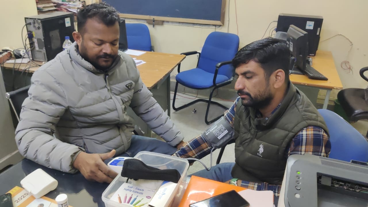 सीएमएचओ कार्यालय स्वास्थ्य भवन में एन सी डी कार्यक्रम अंतर्गत स्वास्थ्य शिविर का आयोजन किया गया मुख्य चिकित्सा एवं स्वास्थ्य अधिकारी डॉ राजेंद्र कुमार पालीवाल ने बताया कि आयोजित शिविर में 40 विभागीय अधिकारियों व कार्मिकों के वजन लंबाई मधुमेह व रक्तचाप संबंधी जांच की गई तथा आभा आई डी बनाई गई उन्होंने बताया कि कार्ययोजना अनुरूप जिला स्तर के अन्य विभागीय कार्यालय में भी स्वास्थ्य शिविरों का आयोजन कर कार्मिकों की स्वास्थ्य जांच की जाएगी।