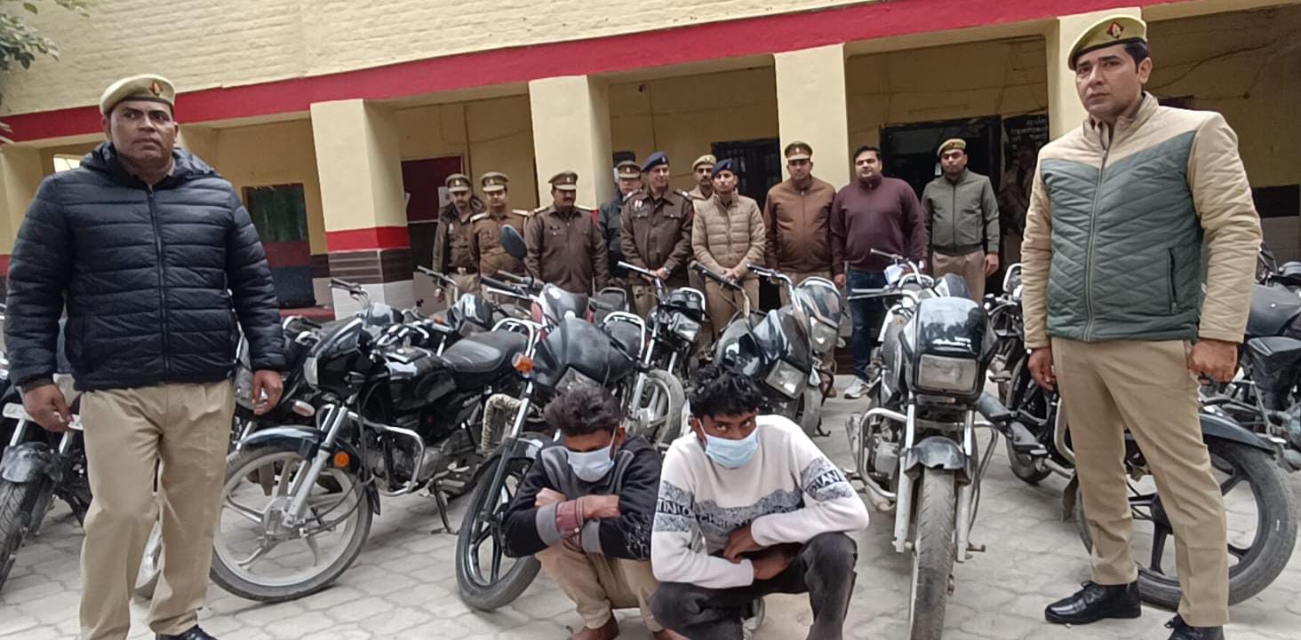 कैराना (शामली): शामली जिले के कैराना कोतवाली पुलिस ने वाहन चोरी की बढ़ती घटनाओं पर लगाम लगाते हुए एक शातिर चोर गिरोह के दो सदस्यों को गिरफ्तार किया है। पुलिस ने आरोपियों के कब्जे से 20 चोरी की मोटरसाइकिलें, एक मोटरसाइकिल के पुर्जे तथा 8 फर्जी नंबर प्लेटें बरामद की हैं। इस सफलता पर पुलिस अधीक्षक (एसपी) शामली नरेंद्र प्रताप सिंह ने घटना का खुलासा करने वाली टीम को 25 हजार रुपये का नकद पुरस्कार देने की घोषणा की है।