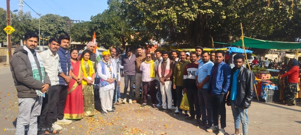 मांडव (धार)। आदिवासी समाज के संवैधानिक अधिकारों की रक्षा तथा जल–जंगल–जमीन को बचाने के संकल्प के साथ निकाली जा रही आदिवासी एकता परिषद की “आदिवासियत (जल–जंगल–जमीन) बचाओ यात्रा” का मांडव नगर में भव्य एवं उत्साहपूर्ण स्वागत किया गया। यात्रा के मांडव पहुंचते ही आदिवासी समाज सहित विभिन्न सामाजिक संगठनों के कार्यकर्ताओं ने जोशपूर्ण नारेबाजी के साथ यात्रा का अभिनंदन किया।
