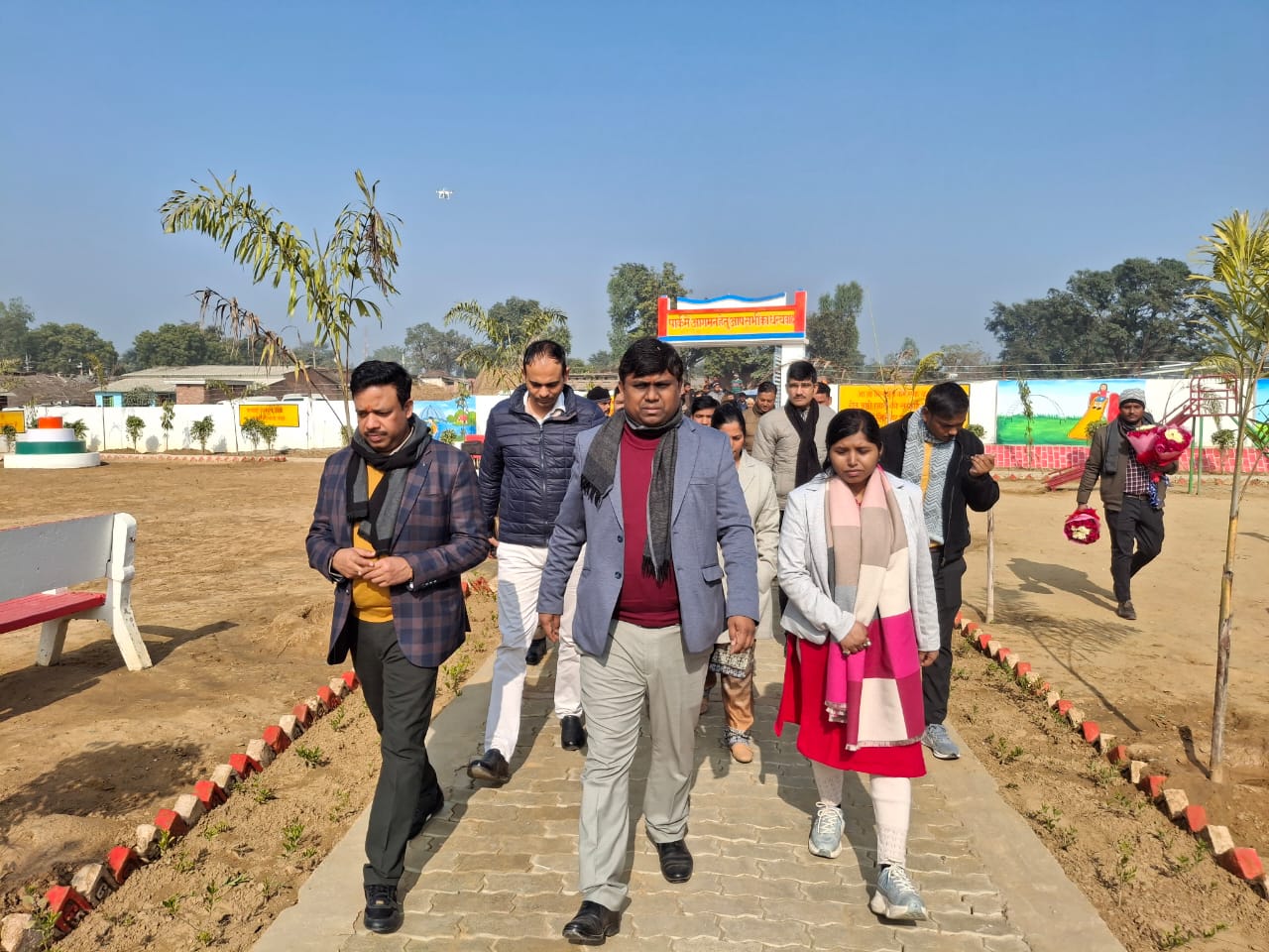 बहराइच 09 जनवरी 2026 दिन शुक्रवार। प्रमुख सचिव, खाद्य एवं रसद तथा उपभोक्ता मामले रणवीर प्रसाद ने मुख्य विकास अधिकारी मुकेश चन्द्र व उपायुक्त मनरेगा रवि शंकर पाण्डेय के साथ विकास खण्ड बलहा अन्तर्गत बंजरिया में निर्मित मनरेगा खेल मैदान एवं पार्क का निरीक्षण किया गया। बीडीओ बलहा सुश्री अपर्णा द्वारा बताया गया कि खेल मैदान एवं पार्क में बैडमिंटन कोर्ट, वॉलीबॉल कोर्ट, ट्रैकिंग पथ वे, योग स्थल, बालक एवं बालिकाओं हेतु अलग-अलग शौचालय, बैठने के लिए बेंच, ओपन जिम के सभी उपकरण के साथ मैदान में सुंदर बैठक की व्यवस्था की गई है। पार्क के चारों तरफ हरे पेड़ लगाए गए जिससे पार्क की सुंदरता बढ़ रही है, चारों तरफ की दीवार में अच्छी पेंटिंग कराई गई है। पार्क में नियमित रूप से महिलाएं एवं बच्चे आ कर टहलते है और खेलो में प्रतिभाग करते है।