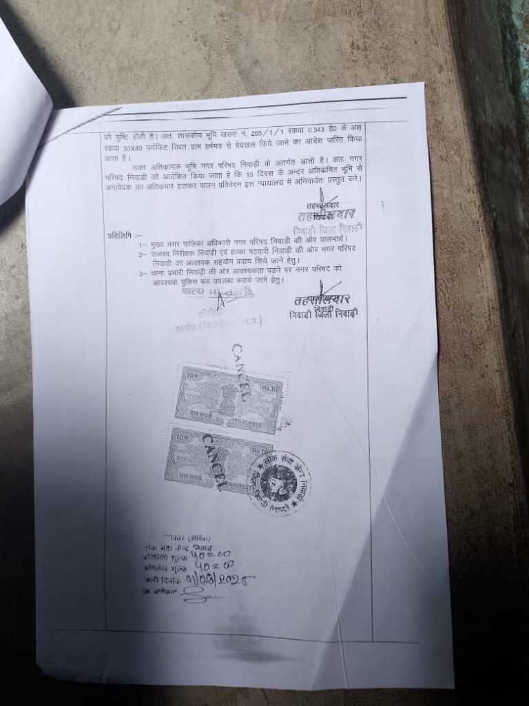 मध्य प्रदेश/निवाड़ी। मध्य प्रदेश के निवाड़ी जिले में सरकारी जमीन को हड़पने के प्रयास लगातार बढ़ते जा रहे हैं। जिला बनने के बाद से जिला मुख्यालय एवं ओरछा स्थित बेशकीमती सरकारी जमीन को भू-माफियाओं एवं अतिक्रमणकारियों से बचाना मुश्किल हो रहा है। इन माफियाओं द्वारा फर्जी रजिस्ट्रियों, फर्जी पट्टों, अवैध तरमीम और अवैध कब्जे के जरिए सरकारी जमीन हड़पने का सिलसिला थम नहीं रहा। कई मामलों में एफआईआर भी दर्ज हो चुकी हैं, लेकिन नगर की सरकारी जमीन पर अतिक्रमण जारी है। हाल ही में हर्षमऊ हल्का अंतर्गत तहसीलदार निवाड़ी द्वारा पारित स्टे और बेदखली आदेश के बावजूद अवैध निर्माण कार्य धड़ल्ले से चल रहा है।