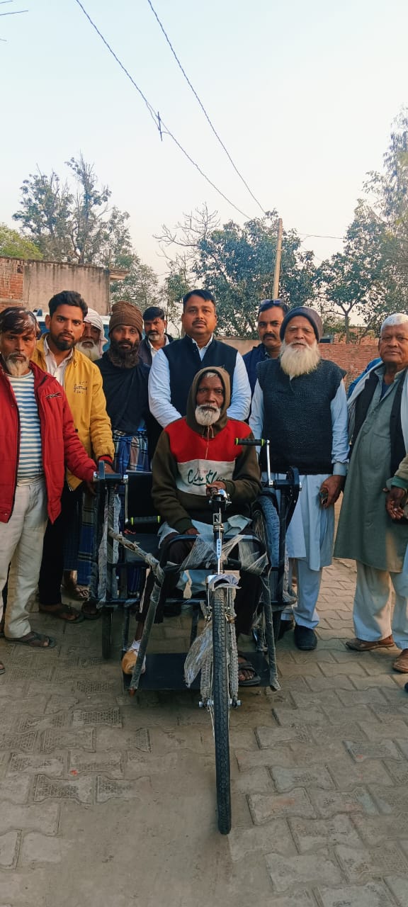 अपील पर लल्लन भैया ने तत्काल ट्राई साइकिल दुकान से खरीदकर अपने साथियों के साथ मोहिउद्दीन के घर जाकर प्रदान की। इस दौरान उन्होंने विकलांग दंपति को हर संभव मदद का आश्वासन दिया। ट्राई साइकिल प्राप्त कर मोहिउद्दीन दंपति ने भावुक होकर धन्यवाद व्यक्त किया।