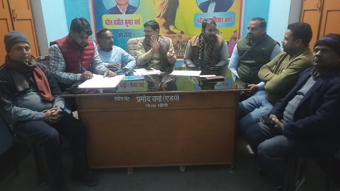 गोला गोकर्णनाथ/लखीमपुर खीरी। कूर्मि क्षत्रिय समाज कल्याण समिति पटेल संस्थान की एक महत्वपूर्ण बैठक आज गोला के मिल बाईपास रोड स्थित पटेल संस्थान परिसर में अध्यक्ष राजीव पटेल की अध्यक्षता में आयोजित की गई। बैठक में आगामी कार्यक्रमों पर विस्तृत विचार-विमर्श हुआ और समाज के एकता एवं सामाजिक सद्भाव को मजबूत करने वाले प्रमुख आयोजनों की रूपरेखा तय की गई।