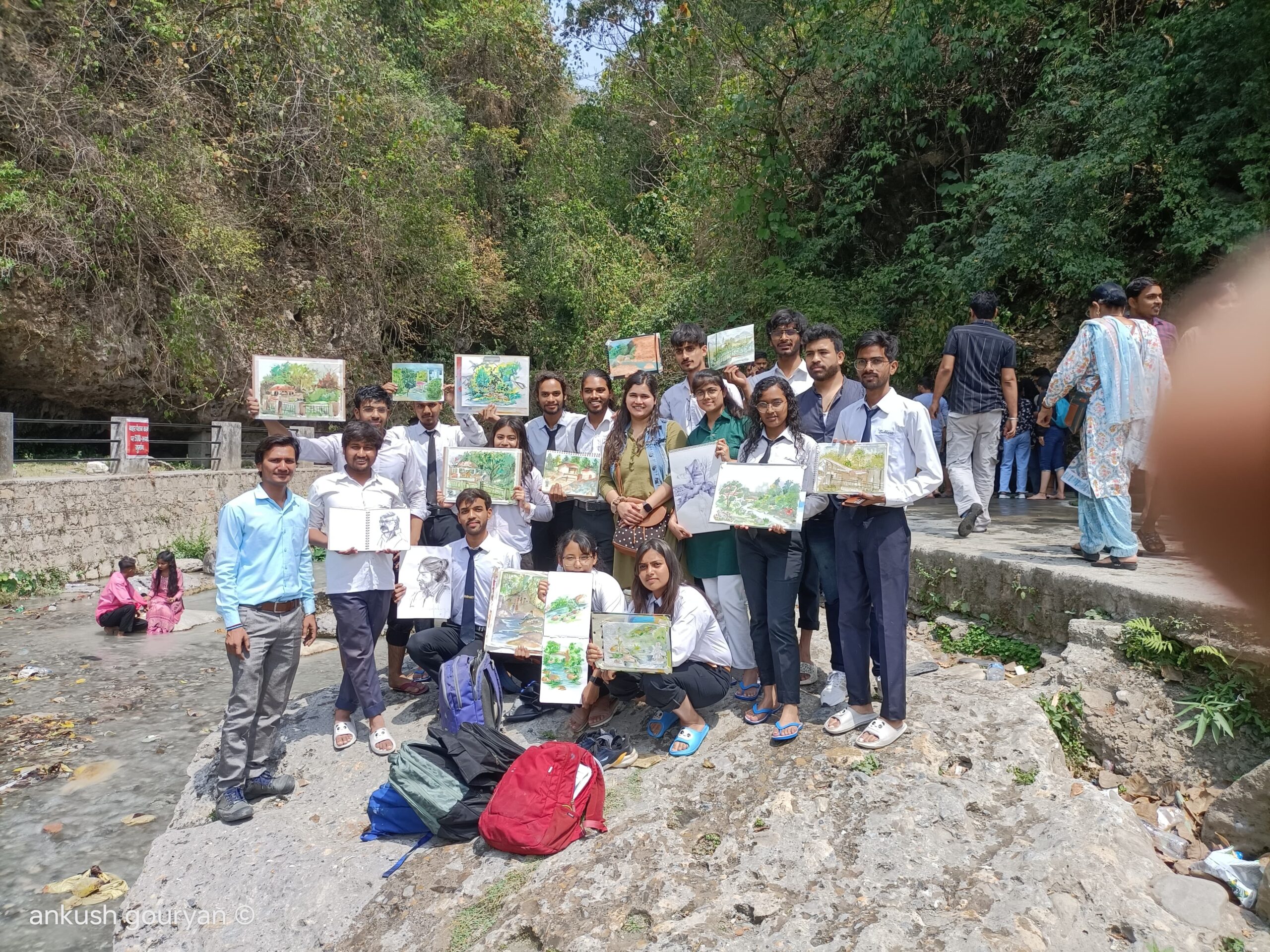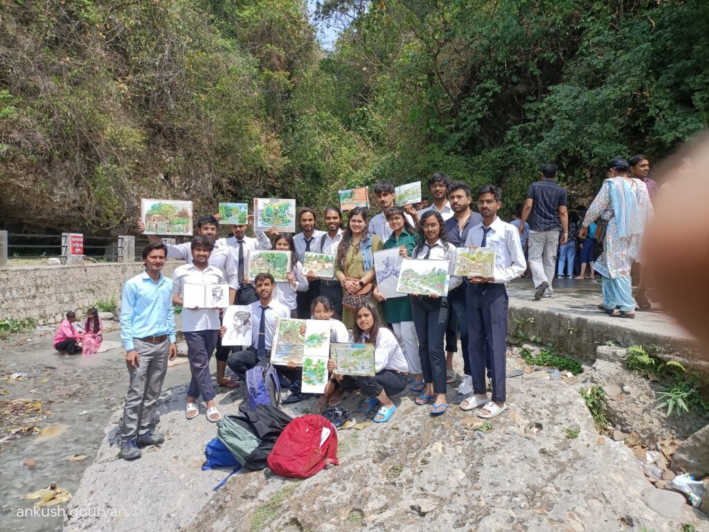 छात्रों ने ललित कला संकाय के शैफाली नेगी, अंकुश, दीपक सिंह शिक्षक के नेतृत्व में प्रथम दिन डाकपत्थर में एवं द्वितीय दिन गुच्चुपानी में द्वारा अद्वितीय चित्र बनाये गये । इनके बनाये हुए चित्र की सराहना वहा उपस्थित पर्यटको ने किया।